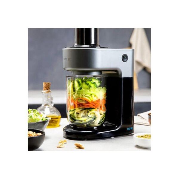 Cecotec Spiralchef 400 é um triturador de vegetais de 80W com 4 lminas de ao inoxidável de diferentes tamanhos, para cortar frutas e vegetais em espiral e com canal de entrada largo. Possui 4 acessórios de corte de ao inoxidável de diferentes tamanhos, para cortar em forma de capellini, espaguete, tagliatelle e pappardelle. Caracteristicas: Potencia de 80 W: Seus 80 W de potencia permitem preparar deliciosas massas de vegetais, saladas e guarnies de frutas e vegetais. O seu aliado perfeito para criar pratos saudáveis, únicos e diferenciados. Variedade de formas: Escolha a forma de suas espirais entre capellini, spaghetti.